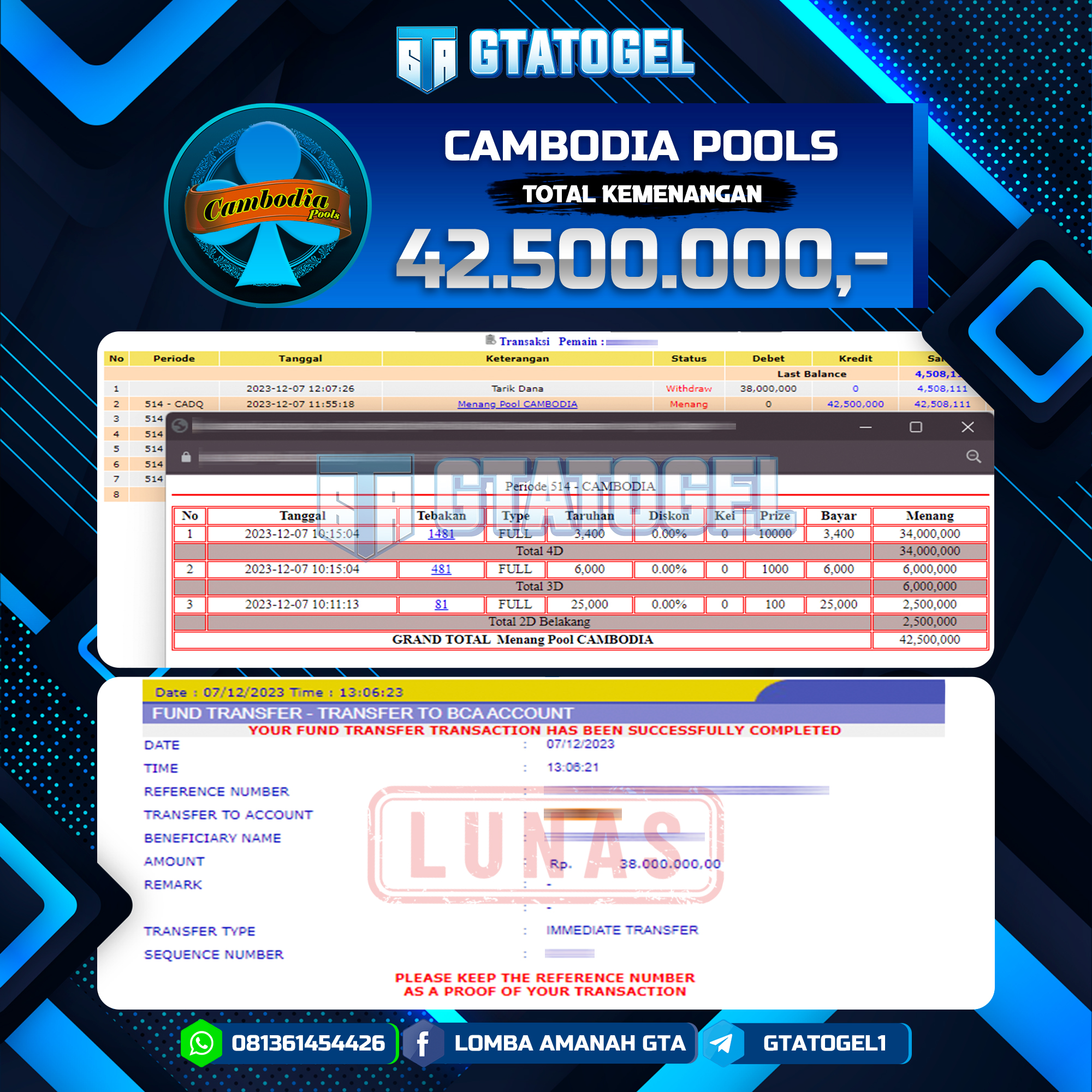 GTATOGEL – BUKTI WITHDRAW KEMENANGAN JP TOGEL SINGAPORE SEBESAR Rp. 42.500.000,- DI BAYAR LUNAS !!!