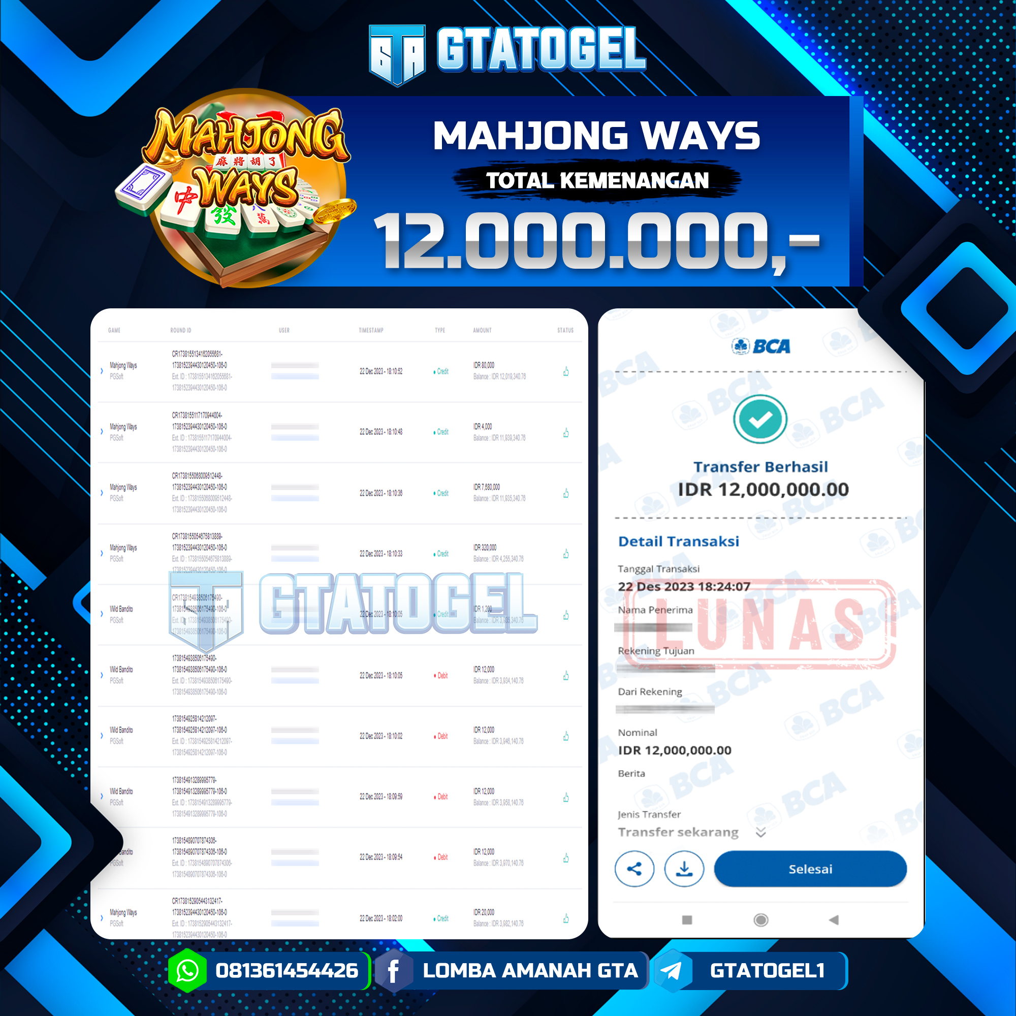 GTATOGEL – BUKTI WITHDRAW KEMENANGAN JP SLOT MAHJONG WAYS TODAY SEBESAR Rp. 12.000.000,- DI BAYAR LUNAS !!!