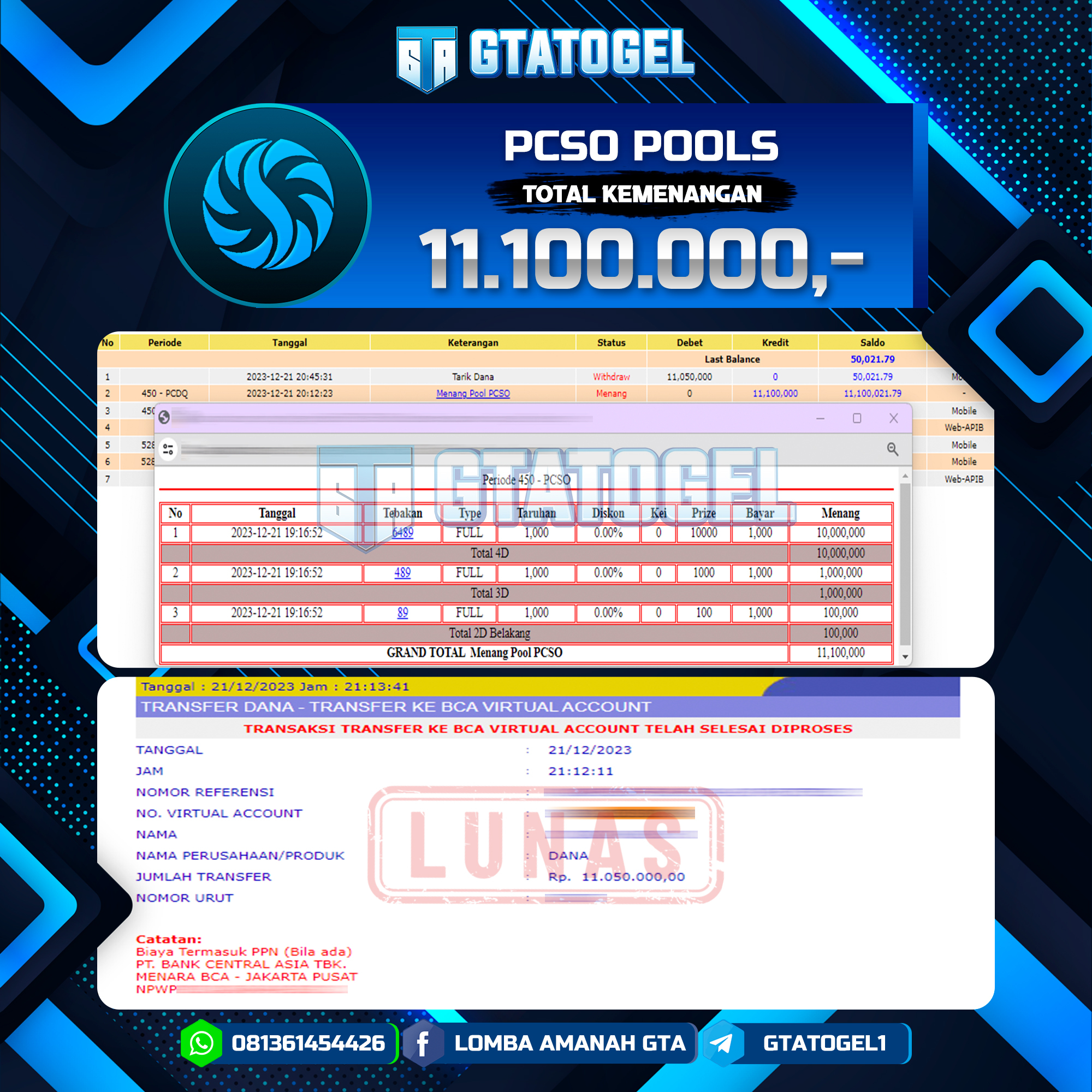GTATOGEL – BUKTI WITHDRAW KEMENANGAN JP TOGEL PCSO TODAY SEBESAR Rp. 11.100.000,- DI BAYAR LUNAS !!!