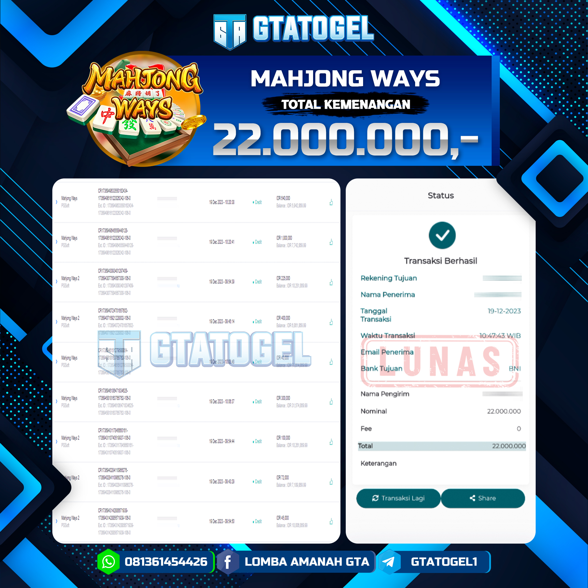 GTATOGEL – BUKTI WITHDRAW KEMENANGAN MAXWIN SLOT MAHJONG WAYS SEBESAR Rp. 22.000.000,- DI BAYAR LUNAS !!!