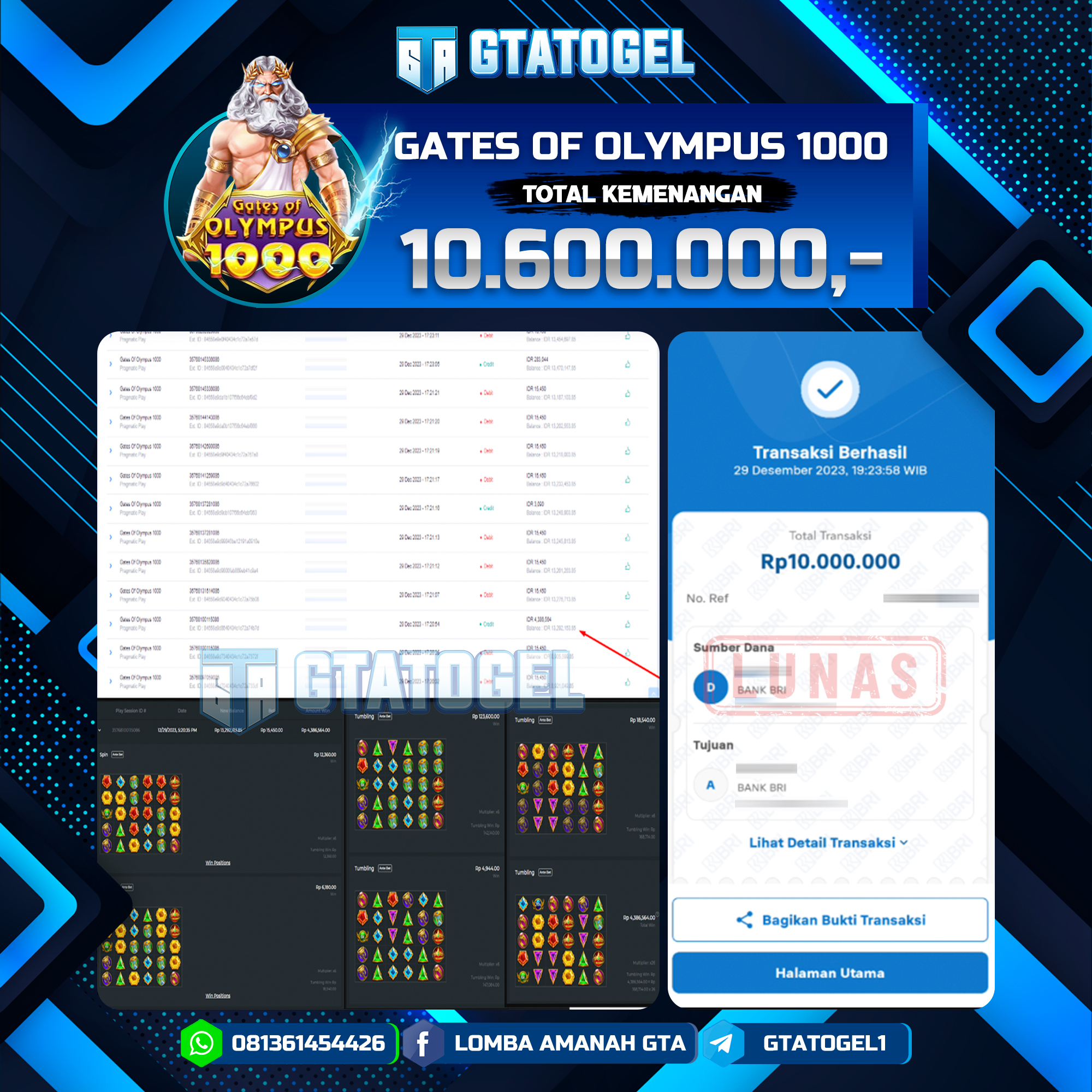 GTATOGEL – BUKTI WITHDRAW KEMENANGAN JP SLOT GATES OF OLYMPUS 1000 SEBESAR Rp. 10.600.000,- DI BAYAR LUNAS !!!