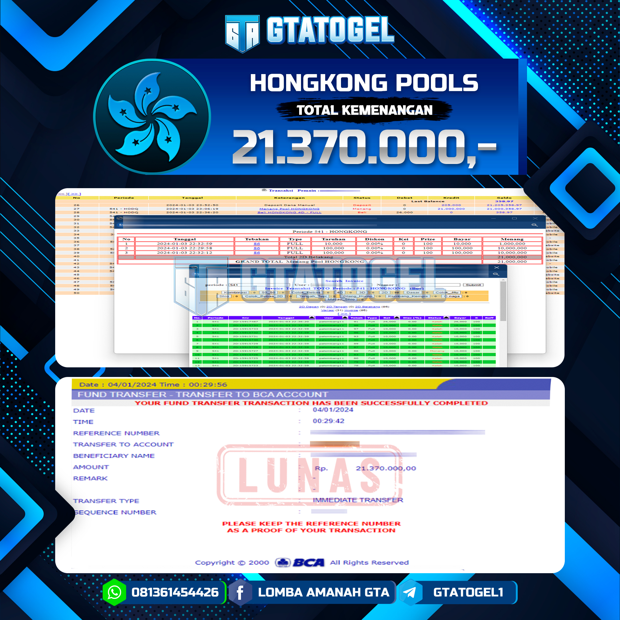 GTATOGEL – BUKTI WITHDRAW KEMENANGAN JP TOGEL HONKONG POOLS SEBESAR Rp. 21.370.000,- DI BAYAR LUNAS !!!