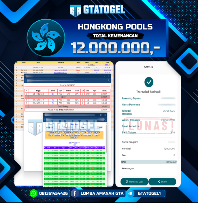 GTATOGEL – BUKTI WITHDRAW KEMENANGAN JP TOGEL HONKONG POOLS SEBESAR Rp. 12.000.000,- DI BAYAR LUNAS !!!