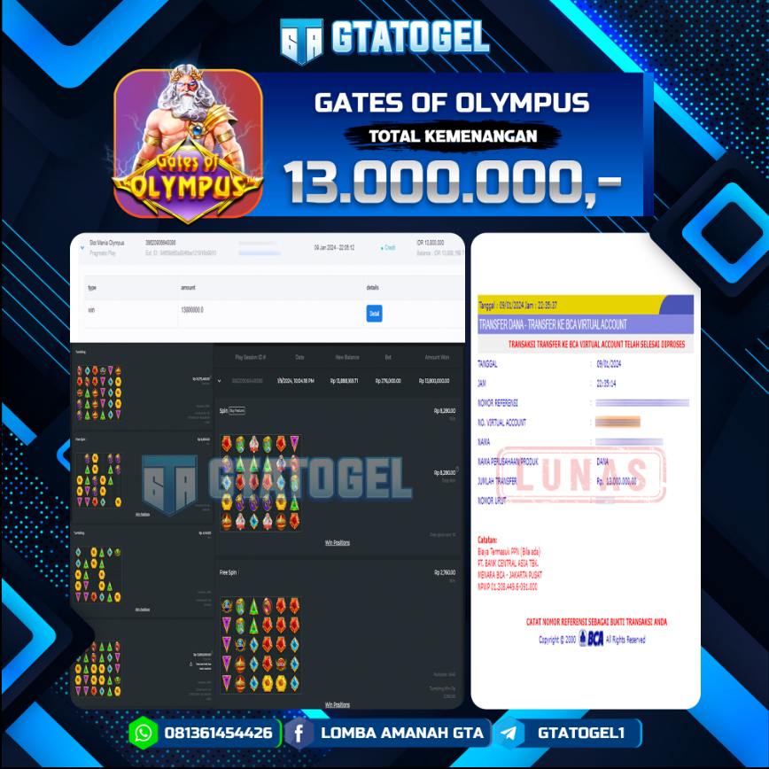GTATOGEL – BUKTI WITHDRAW KEMENANGAN JP SLOT GATES OF OLYMPUS SEBESAR Rp. 13.000.000,- DI BAYAR LUNAS !!!