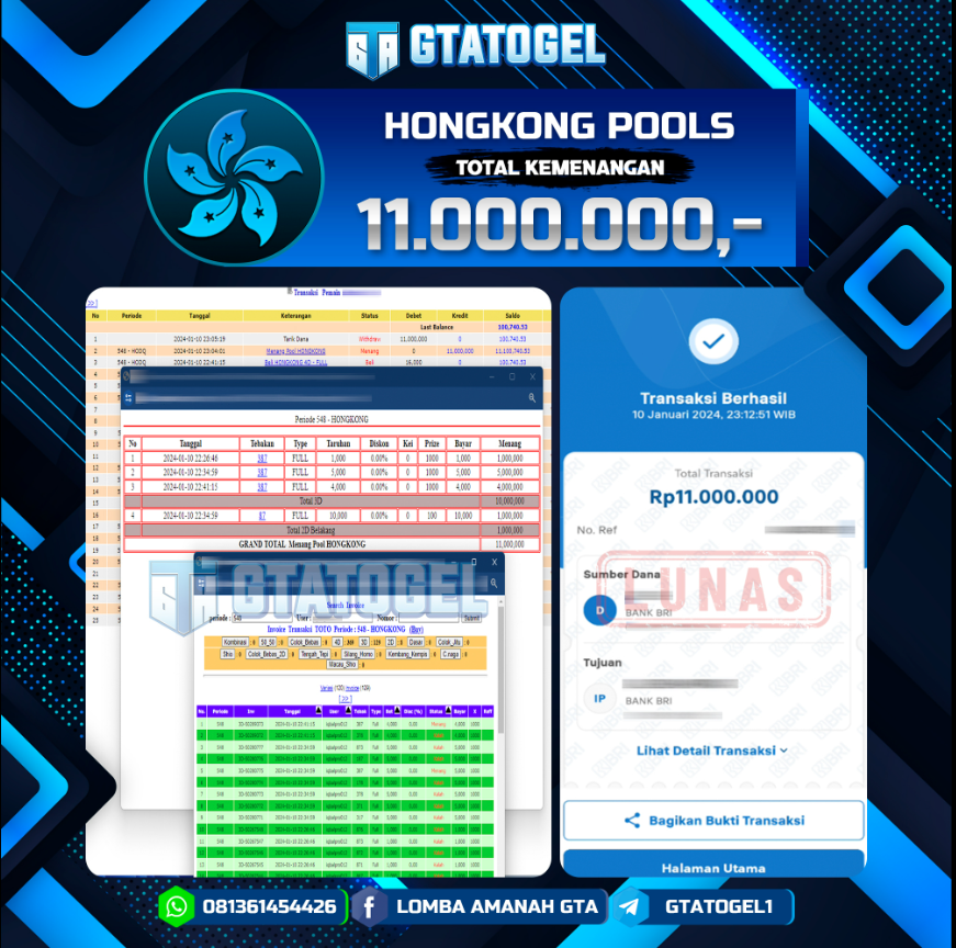 GTATOGEL – BUKTI WITHDRAW KEMENANGAN JP TOGEL HONKONG POOLS SEBESAR Rp. 11.000.000,- DI BAYAR LUNAS !!!