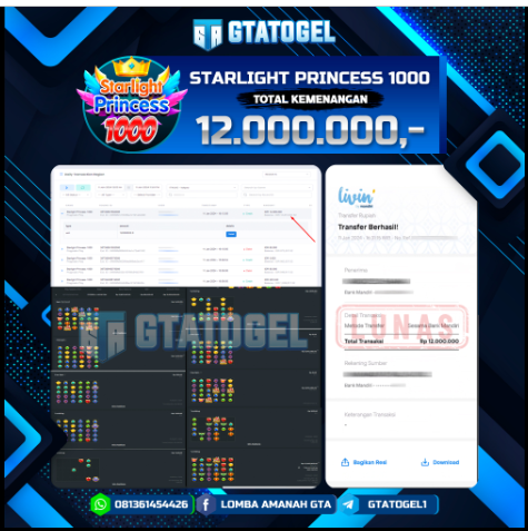 GTATOGEL – BUKTI WITHDRAW KEMENANGAN JP SLOT STARLIGHT PRINCESS SEBESAR Rp. 12.000.000,- DI BAYAR LUNAS !!!