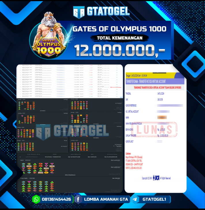 GTATOGEL – BUKTI WITHDRAW KEMENANGAN JP SLOT GATES OF OLYMPUS 1000 SEBESAR Rp. 12.000.000,- DI BAYAR LUNAS !!!