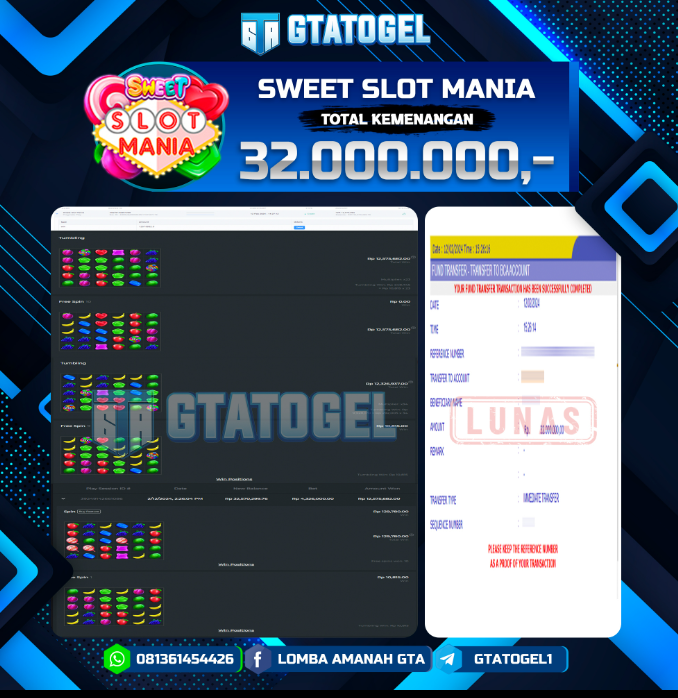 GTATOGEL – BUKTI WITHDRAW KEMENANGAN JP SLOT SEBESAR SWEET SLOT MANIA Rp. 32.000.000,- DI BAYAR LUNAS !!!