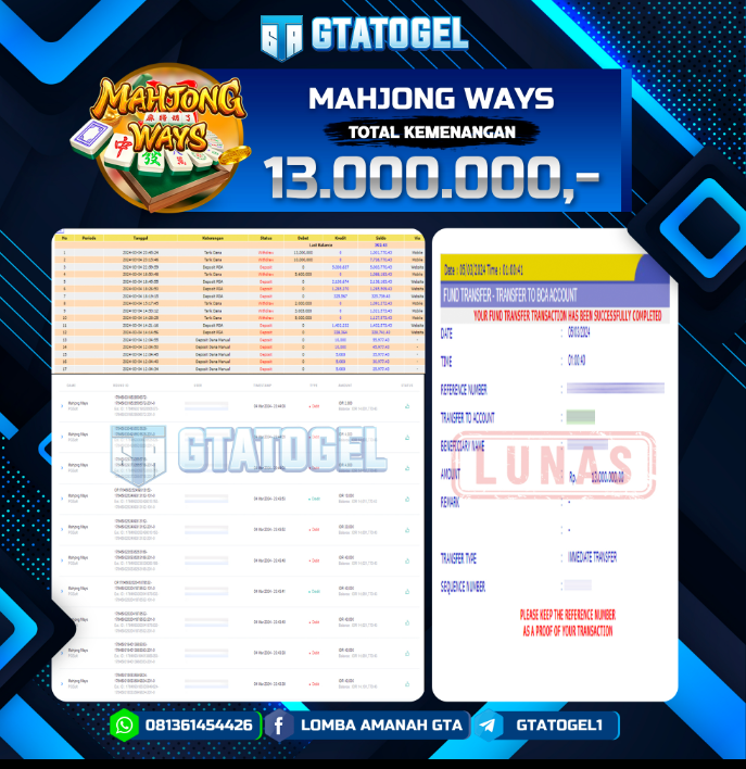 Bukti JP MAXWIN SLOT Situs GTATOGEL Hari ini Sebesar Rp.13.000.000,- Lunas