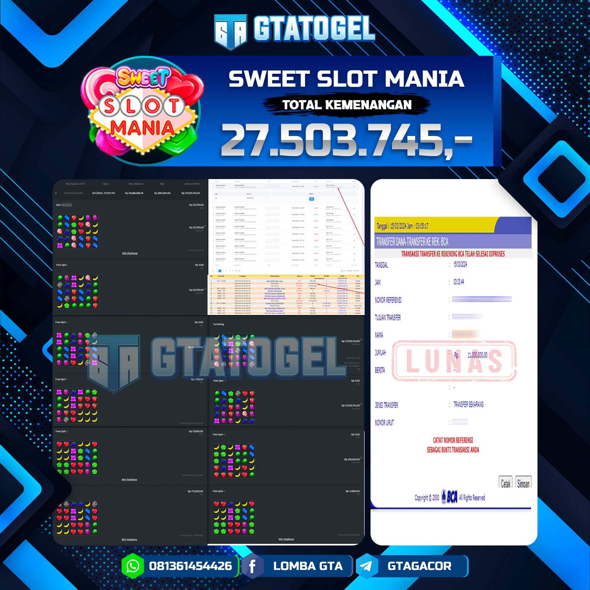 GTATOGEL – BUKTI WITHDRAW KEMENANGAN JP SLOT SEBESAR SWEET SLOT MANIA Rp. 27.503.745,- DI BAYAR LUNAS !!!