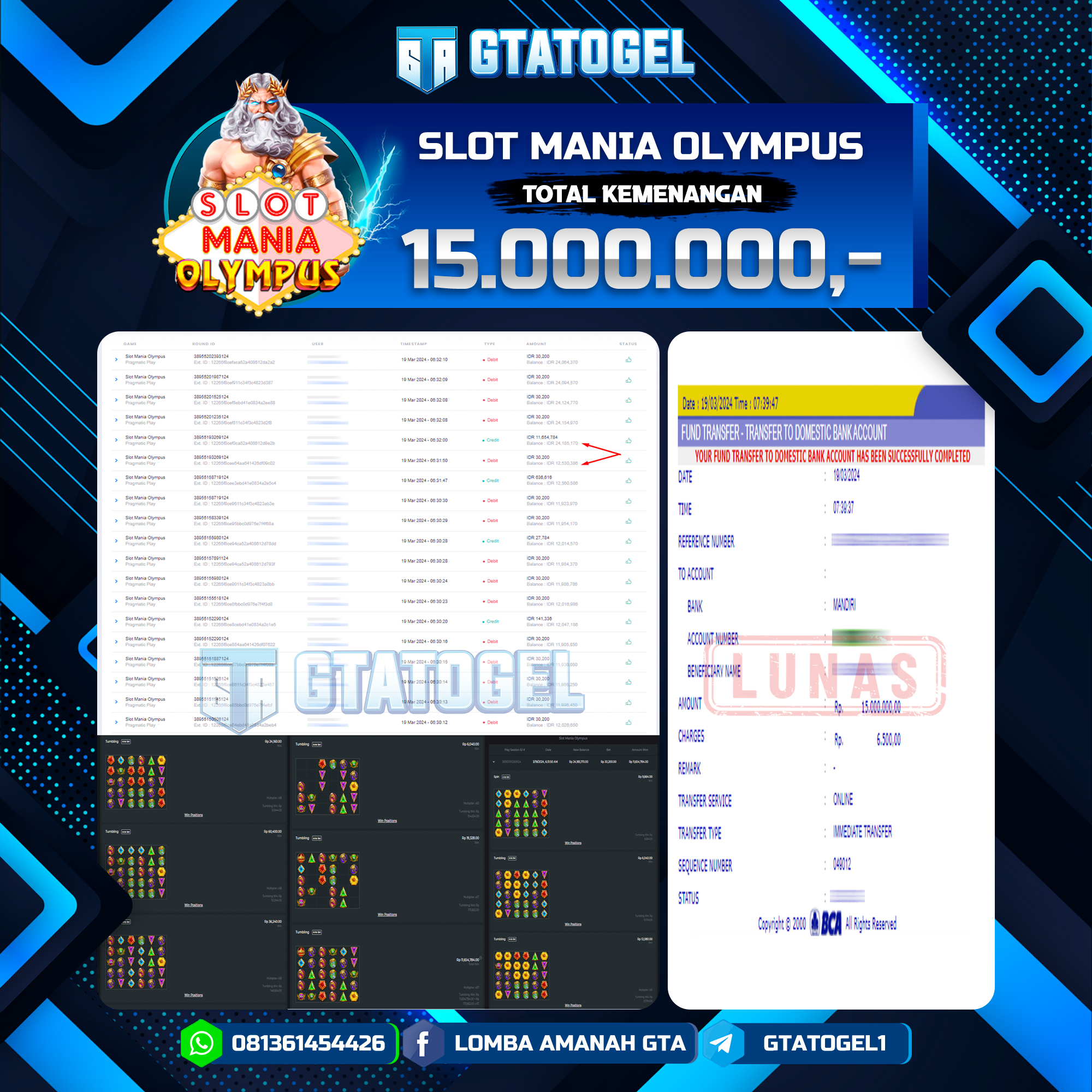 GTATOGEL – BUKTI WITHDRAW KEMENANGAN JP GATES OF OLYMPUS Rp. 15.000.000,- DI BAYAR LUNAS !!!