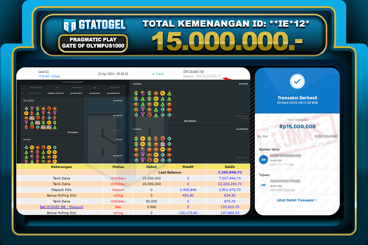 GTATOGEL – BUKTI WITHDRAW KEMENANGAN JP GATE OF OLYMPUS1000 Rp. 15.000.000,- DI BAYAR LUNAS !!!