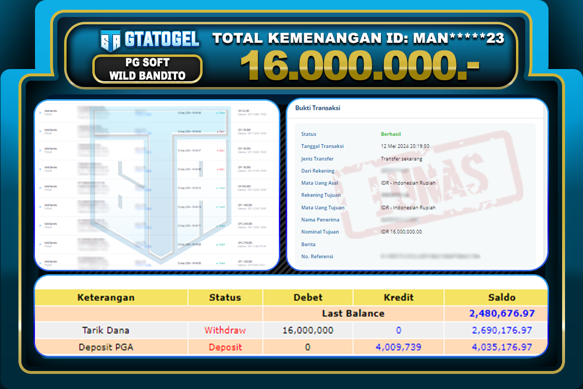 GTATOGEL – BUKTI WITHDRAW KEMENANGAN JP WILD BANDITO Rp.16.000.000,- DI BAYAR LUNAS !!!