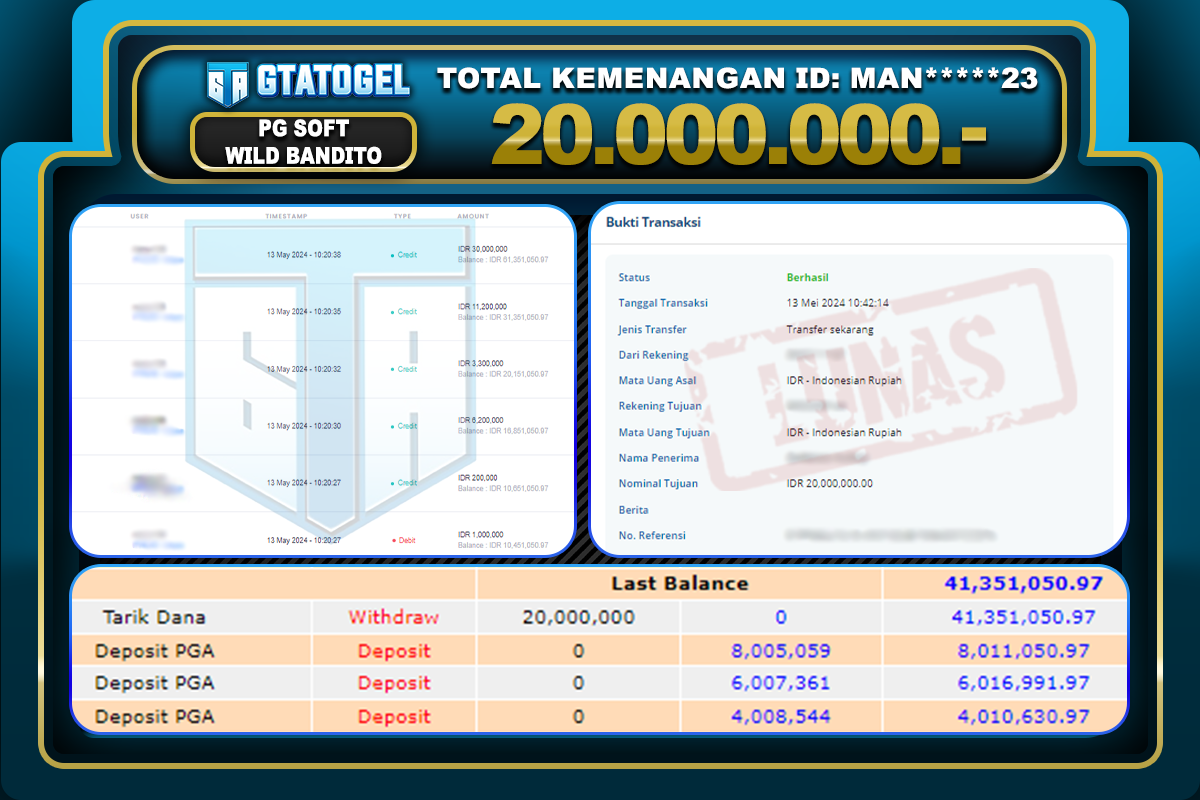 GTATOGEL – BUKTI WITHDRAW KEMENANGAN JP WILD BANDITO Rp.20.000.000,- DI BAYAR LUNAS !!!