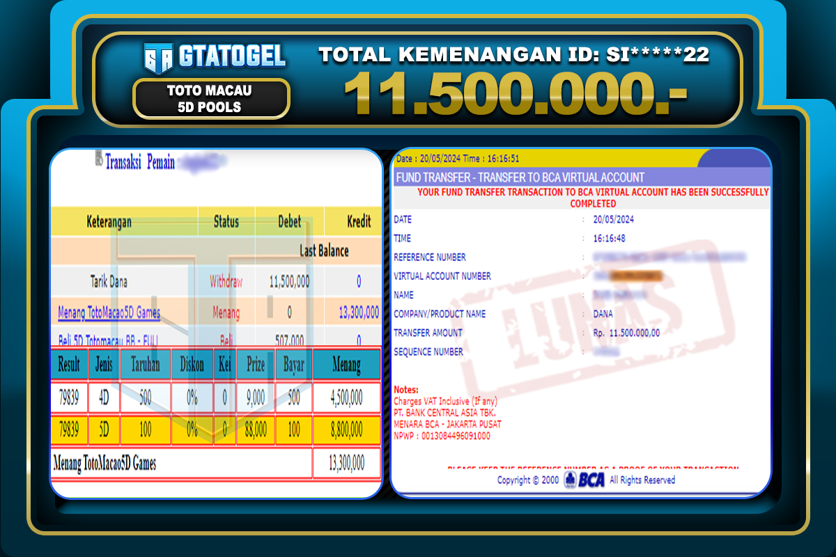 GTATOGEL – BUKTI WITHDRAW KEMENANGAN JP TOTO MACAU 5D POOLS Rp. 11.500.000,- DI BAYAR LUNAS !!!