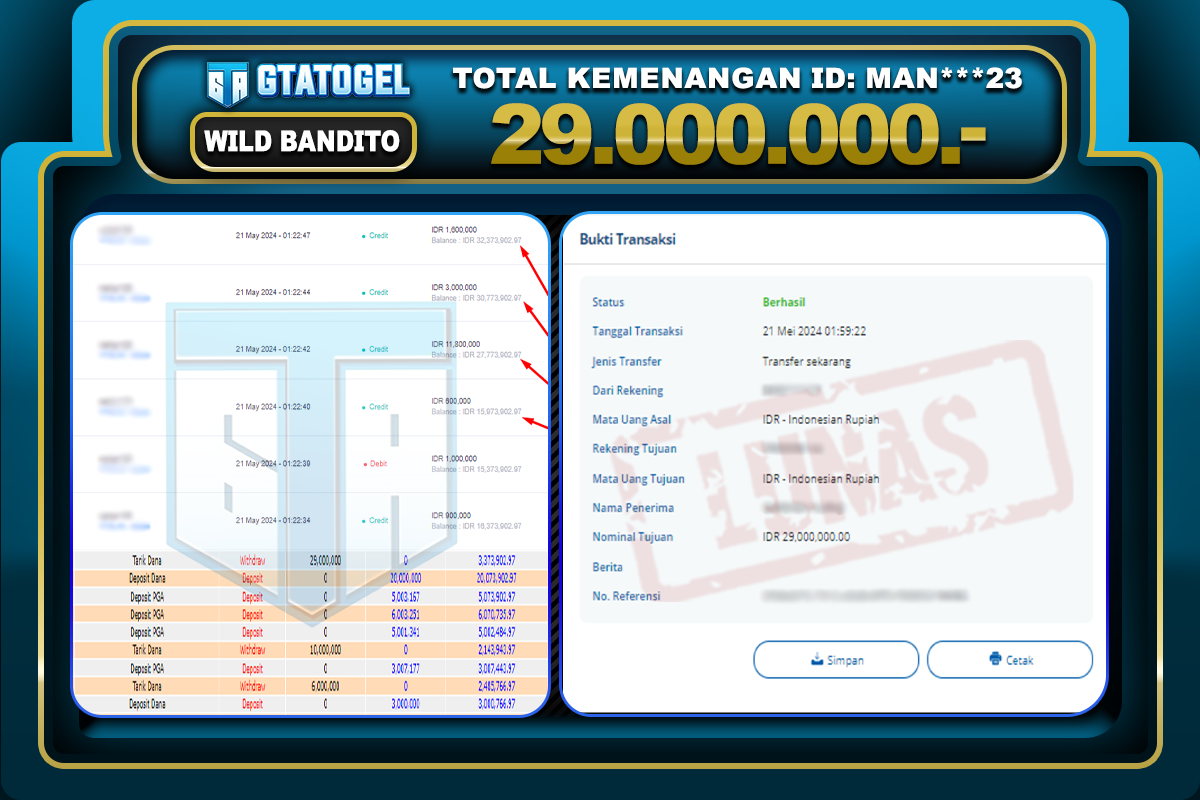 GTATOGEL – BUKTI WITHDRAW KEMENANGAN JP WILD BANDITO Rp. 29.000.000,- DI BAYAR LUNAS !!!