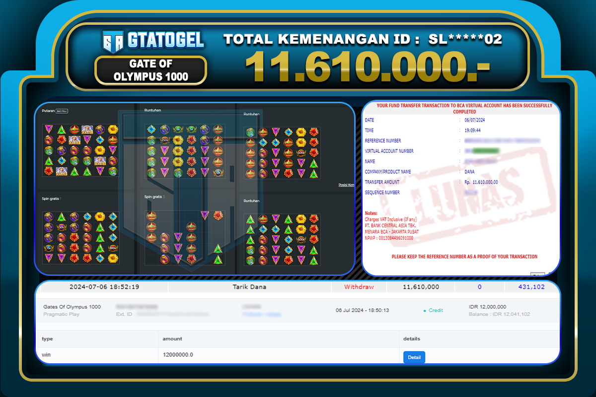 GTATOGEL – BUKTI WITHDRAW KEMENANGAN JP GATE OF OLYMPUS Rp. 11.610.000,- DI BAYAR LUNAS !!!