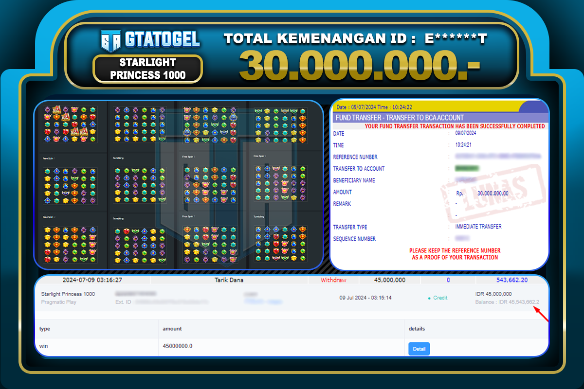 GTATOGEL – BUKTI WITHDRAW KEMENANGAN JP SLOT STARLIGHT PRINCESS SEBESAR Rp. 30.000.000,- DI BAYAR LUNAS !!!
