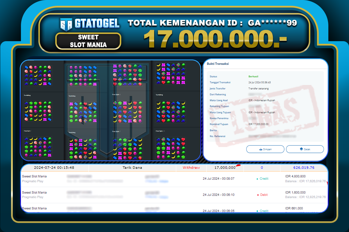 GTATOGEL – BUKTI WITHDRAW KEMENANGAN JP SWEET SLOT MANIA SEBESAR Rp. 17.000.000,- DI BAYAR LUNAS !!!
