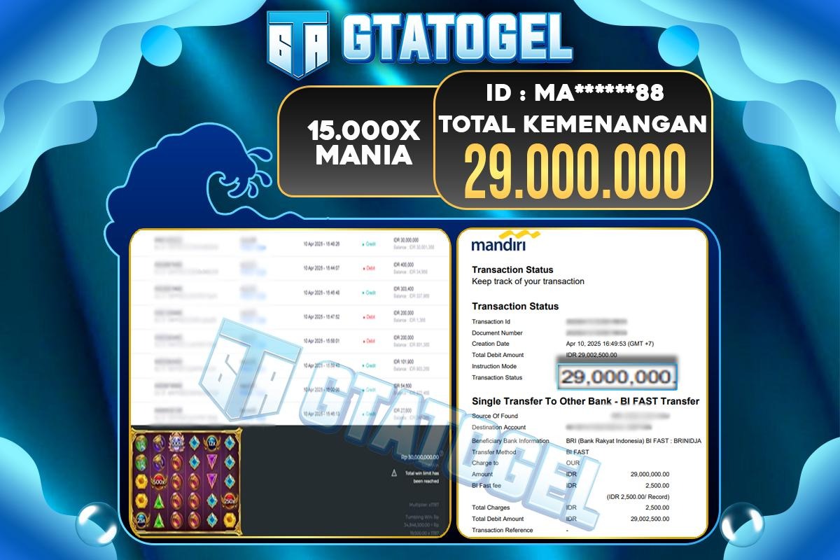 GTATOGEL – BUKTI WITHDRAW KEMENANGAN JACKPOT 15.000X MANIA  Rp.29.000.000,- DI BAYAR LUNAS !!!