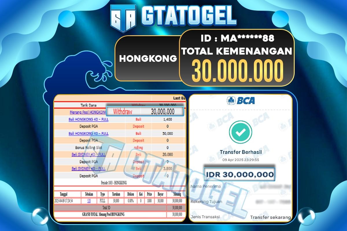GTATOGEL – BUKTI WITHDRAW KEMENANGAN JP TOGEL HONGKONG Rp.30.000.000,- DI BAYAR LUNAS !!!