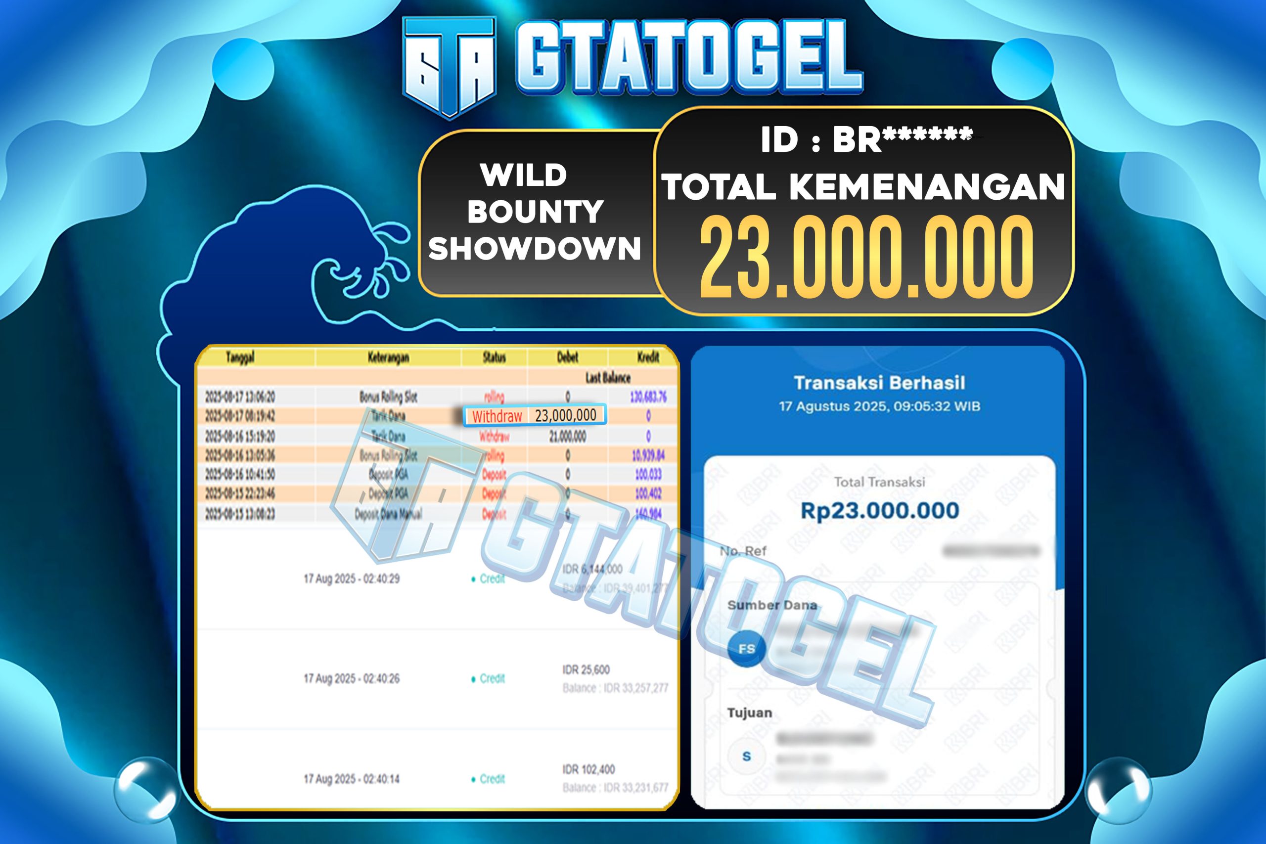 GTATOGEL – BUKTI WITHDRAW KEMENANGAN JACKPOT WILD BOUNTY SHOWDOWN Rp.23.000.000,- DI BAYAR LUNAS !!!