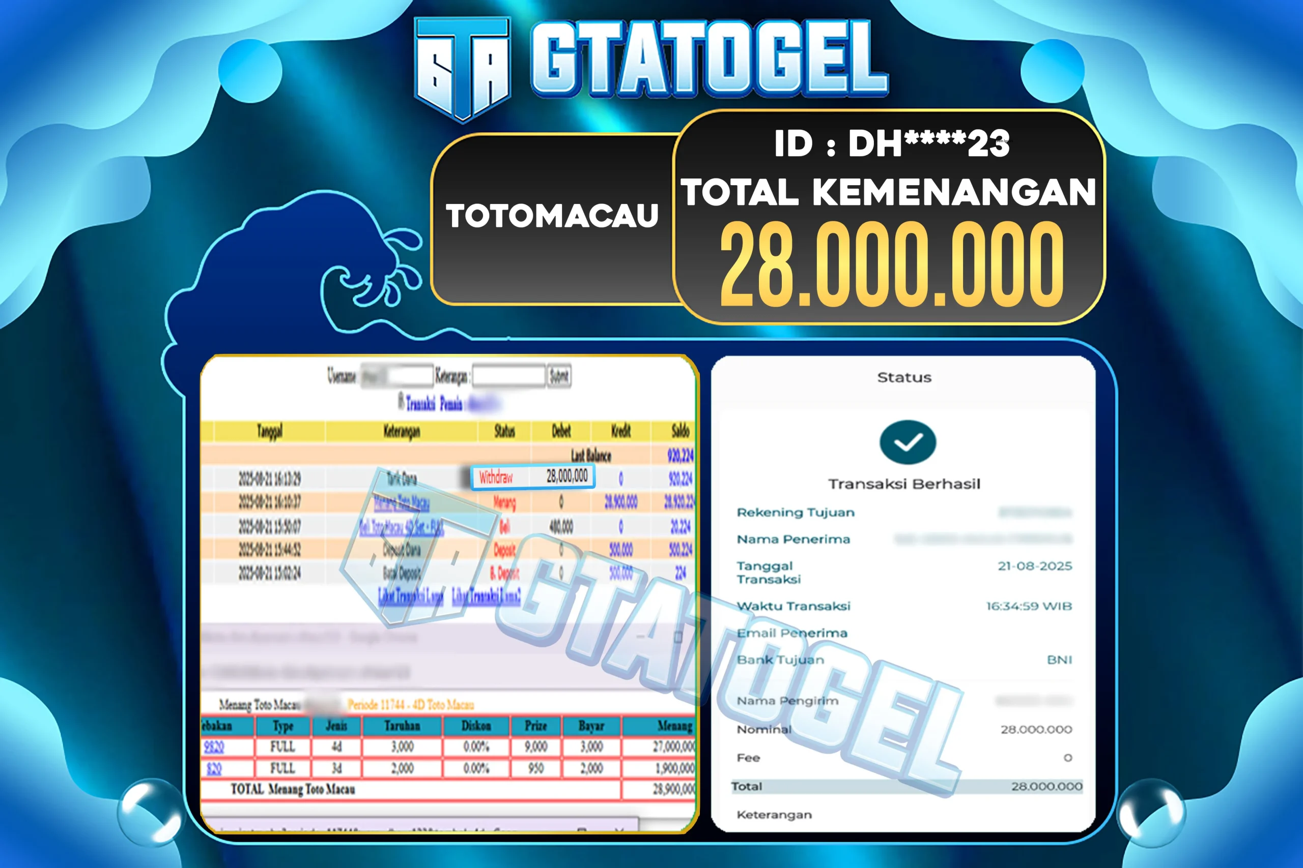 GTATOGEL – BUKTI WITHDRAW KEMENANGAN JP TOTOMACAU Rp.28.000.000,- DI BAYAR LUNAS !!!
