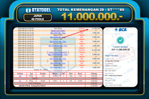 GTATOGEL – BUKTI WITHDRAW KEMENANGAN JP CHINA 4D POOLS Rp. 12.000.000,- DI BAYAR LUNAS !!! Bukti Withdraw...