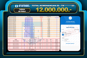 GTATOGEL – BUKTI WITHDRAW KEMENANGAN JP TAIWAN 4D POOLS Rp.12.000.000,- DI BAYAR LUNAS !!! Bukti Withdraw Situs...